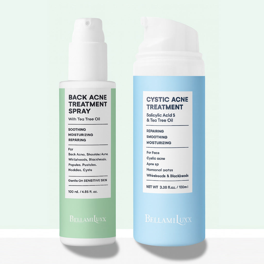 The active ingredients in the BellamiLuxx Back and Body Acne Treatment Spray are 2% Salicylic Acid and Tea Tree Oil.