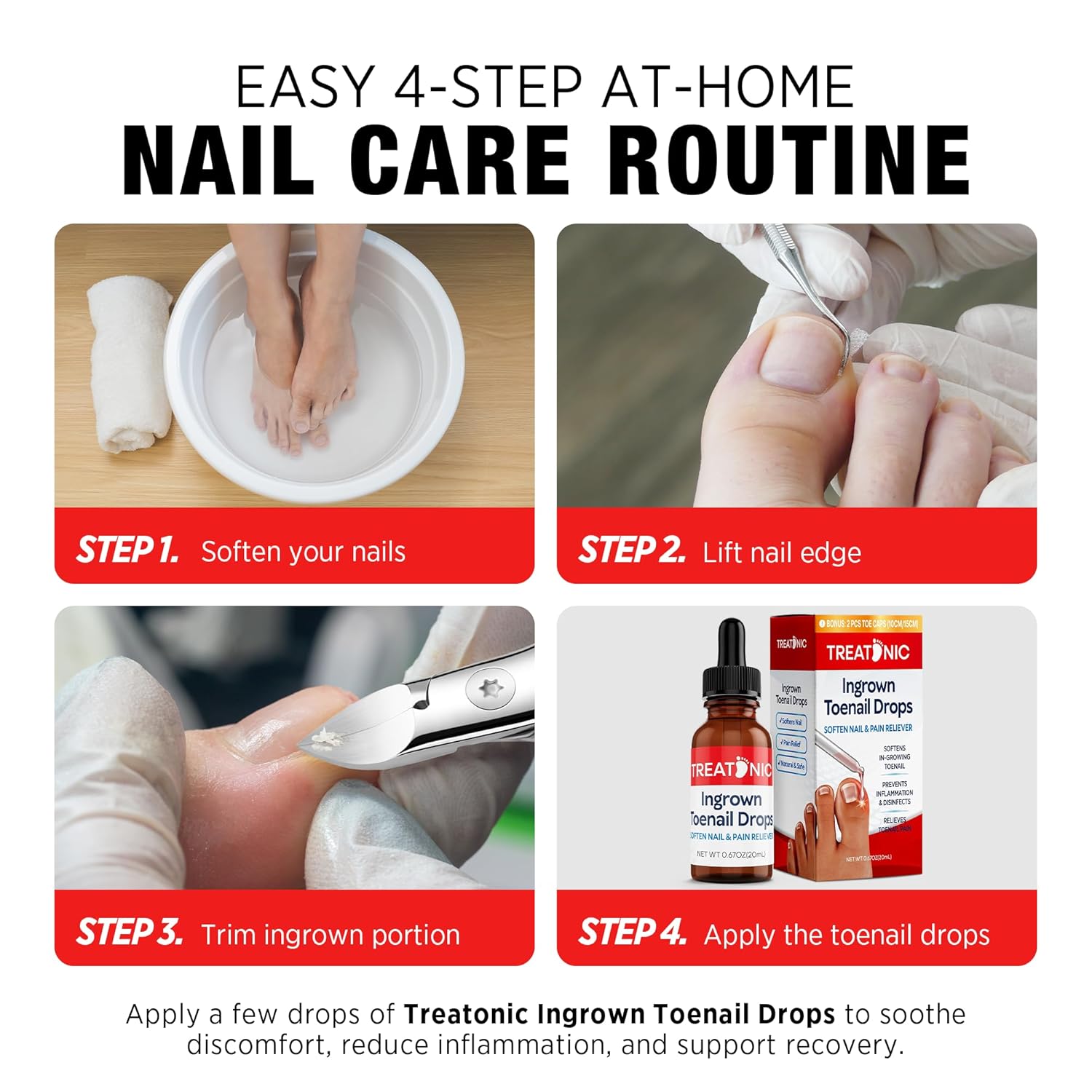 The Treatonic Ingrown Toenail Clipper Removal Kit includes two essential tools: a heavy-duty toenail clipper for trimming thick or damaged nails and a dual-end lifter and nail cleaner to raise embedded nail edges and remove debris beneath the nail.